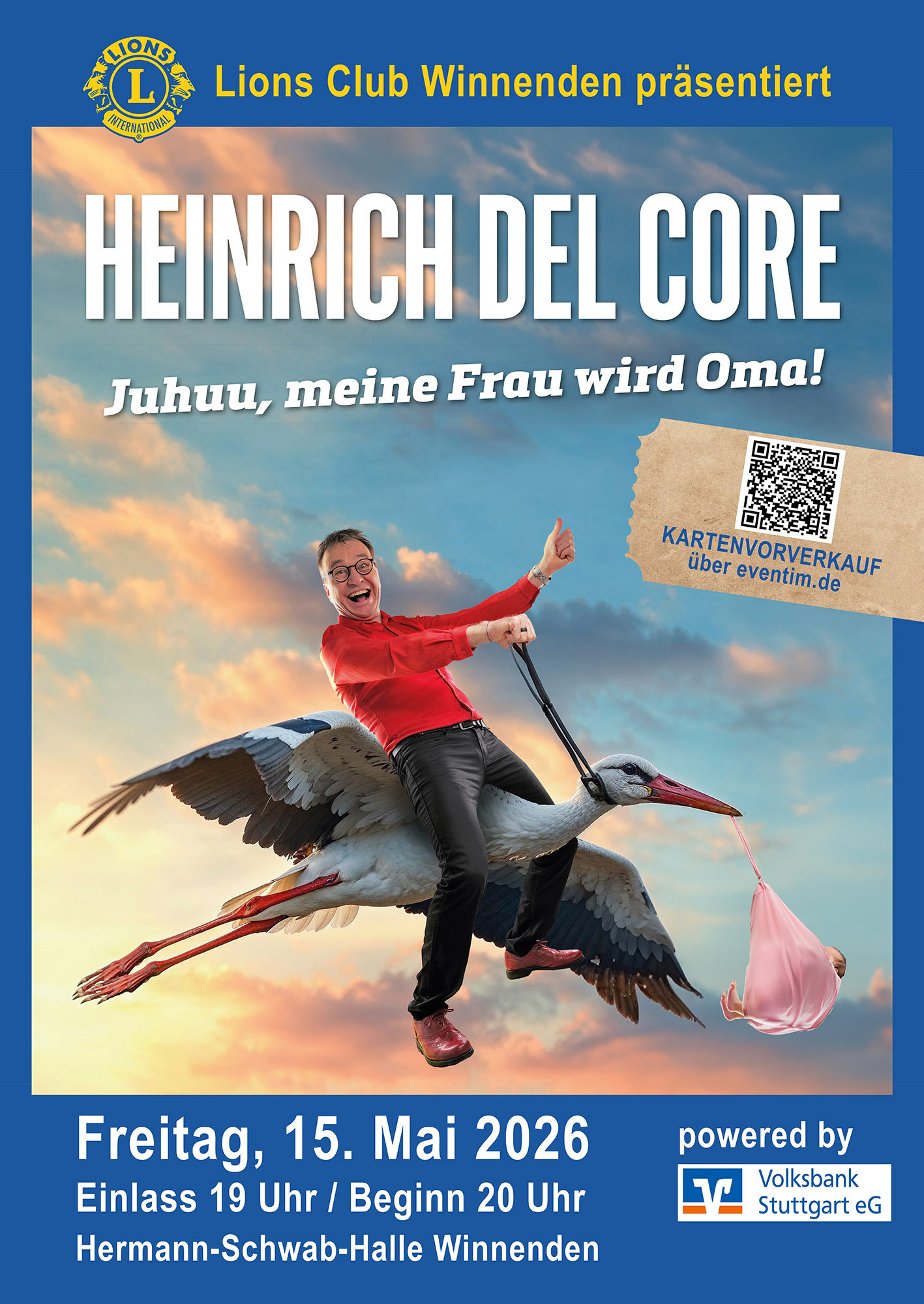 Am Freitag, 15. Mai 2026, ist Heinrich Del Core live in der Hermann-Schwab-Halle Winnenden zu erleben. Freuen Sie sich auf einen unterhaltsamen Abend voller Alltagsbeobachtungen, schwäbischem Humor und vielen Lachmomenten – präsentiert vom Lions Club Winnenden.