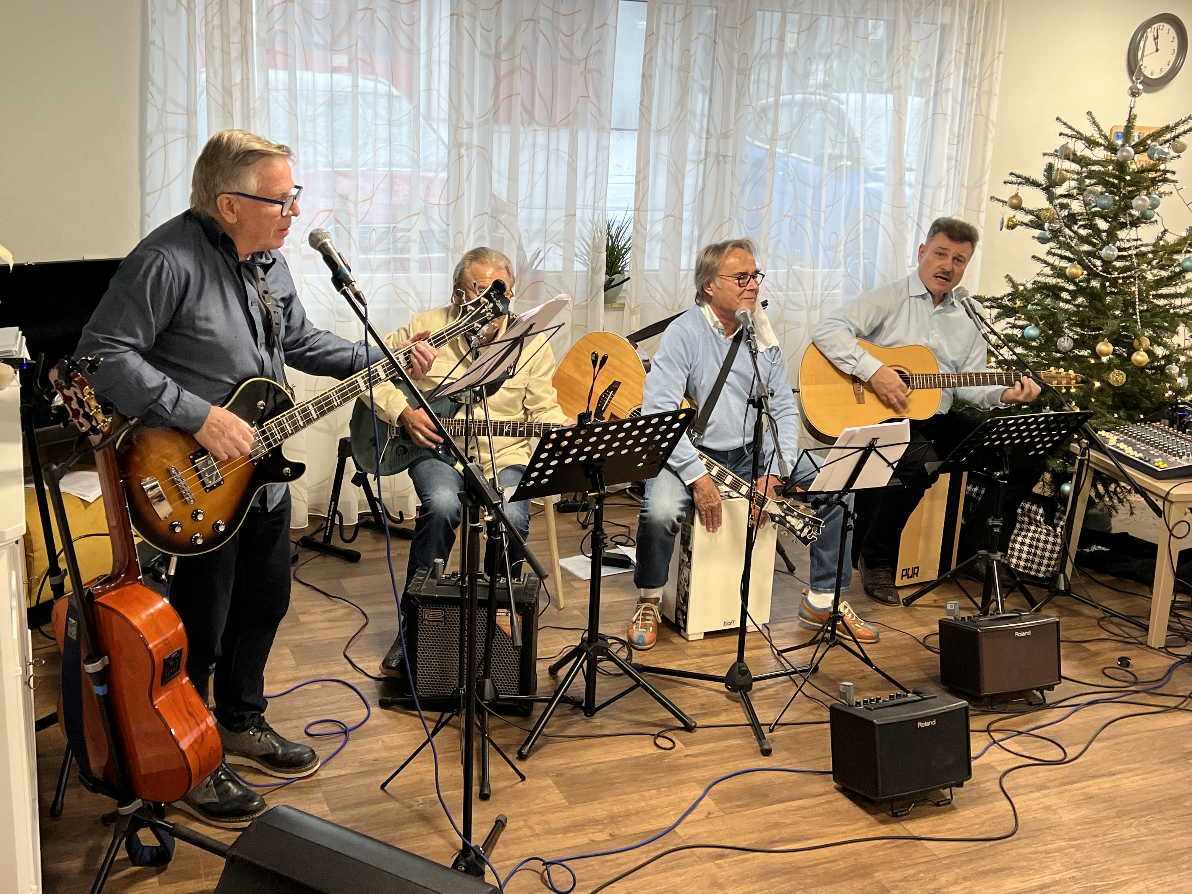 Vormittags in Burgstall und nachmittags im Alten Krankenhaus in Winnenden, geben die vier Musiker ihr Bestes für die zahlreichen Gäste und deren Betreuer der Tagespflege-Einrichtung. Für jeweils ca. eine Stunde spielte die Band Evergreens, Schlager und auch Weihnachtslieder. Die Bewohner, ganz egal ob mit oder ohne Demenz, hatten sichtlich Spaß und Freude an den bekannten Liedern und sangen und tanzten diese mit Begeisterung mit.